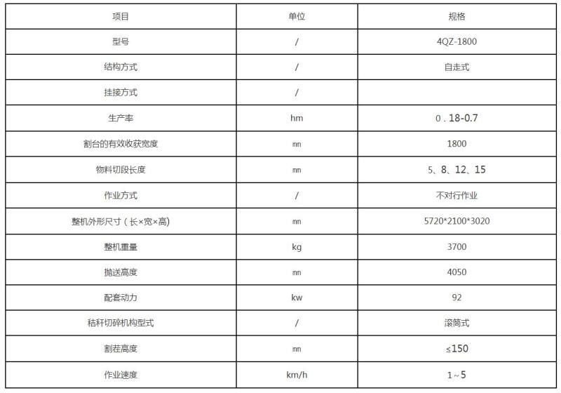 自走式青饲料收获机规格: