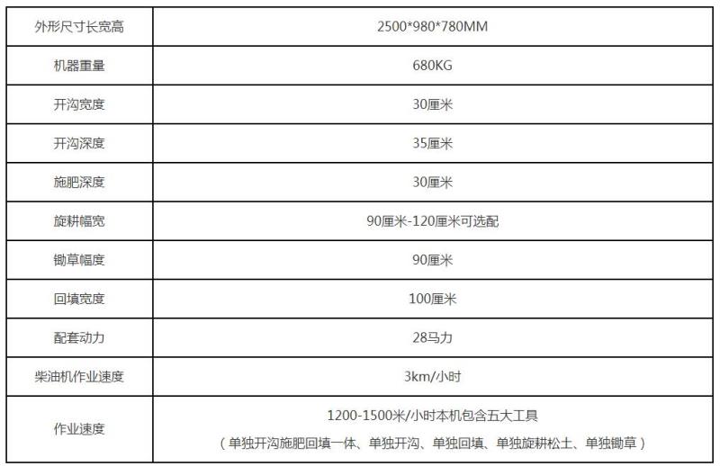田园管理机主要参数: