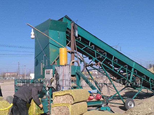 主缸横推压实-侧缸纵向压实-推包压头将包块推入包装袋中。各部件回位继续下一个工作循环。整个过程一气呵成,同时也能切换成半自动、手动。整个打包过程仅用1分钟。相比之下立式打包机的单位打包成本较低,但是生产效率较低;卧式秸秆打包机投资较大、但生产效率提高10倍、压力大包块重量大、可以弥补设备投资的缺点。